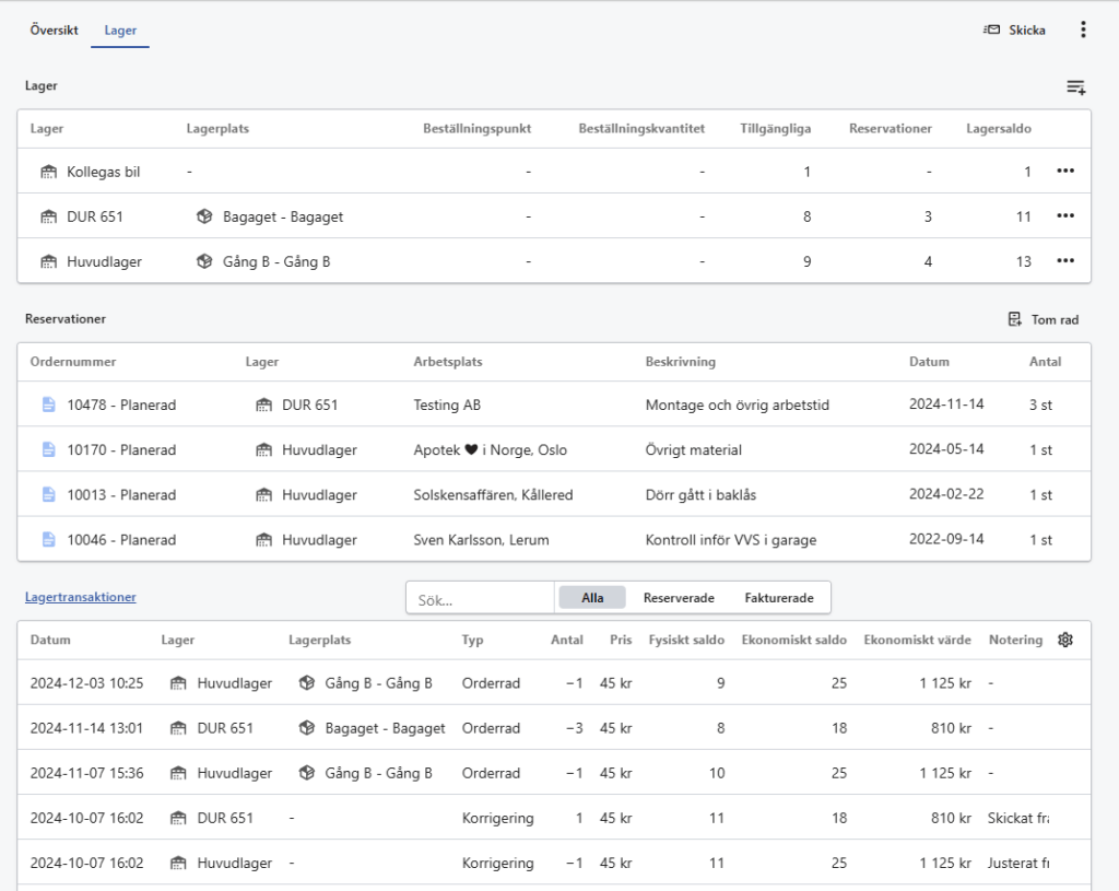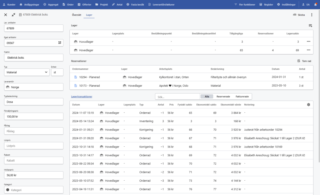 Lagerverdi finner man enkelt i statistikkmodulen. Der kan man også se hver enkelt transaksjon som har funnet sted