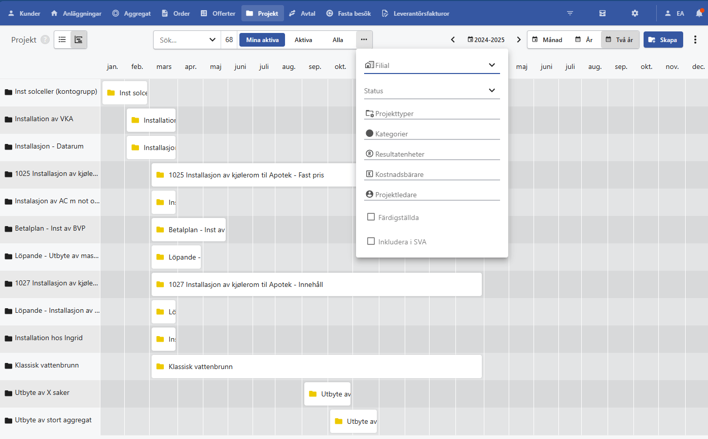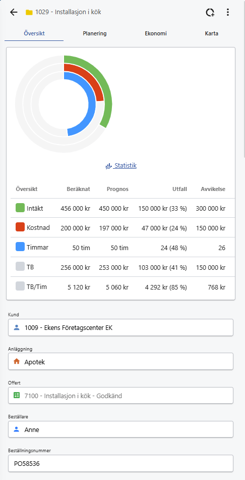 Endrings- og tilleggsarbeider håndteres i samme prosjekt for full kontroll. For å starte et E&T-arbeid kan du opprette en ordre og endre den til en E&T-ordre direkte ute på arbeidsplassen. Alternativt kan du opprette et tilbud fra prosjektet for de jobbene som skal inngå i et enkeltstående E&T-arbeid. Når tilbudet godkjennes, opprettes det en ordre basert på tilbudet.